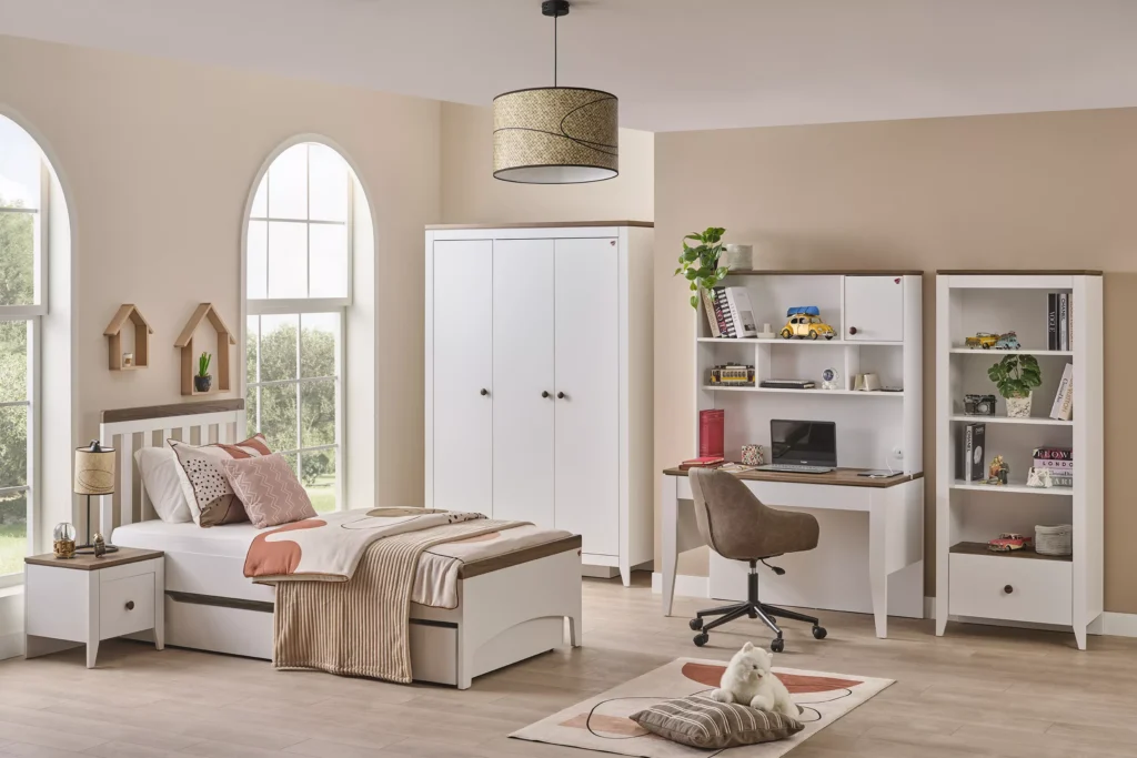 2025’in en belirgin genç odası trendi minimalizm. Kupa’nın koleksiyonlarında kullanılan doğal ahşap tonları, mat yüzeyler, temiz hatlar ve yalın tasarım dili; güncel dekorasyon beklentileriyle birebir örtüşüyor. Bu yaklaşım odada modern ama sıcak bir atmosfer yaratıyor.